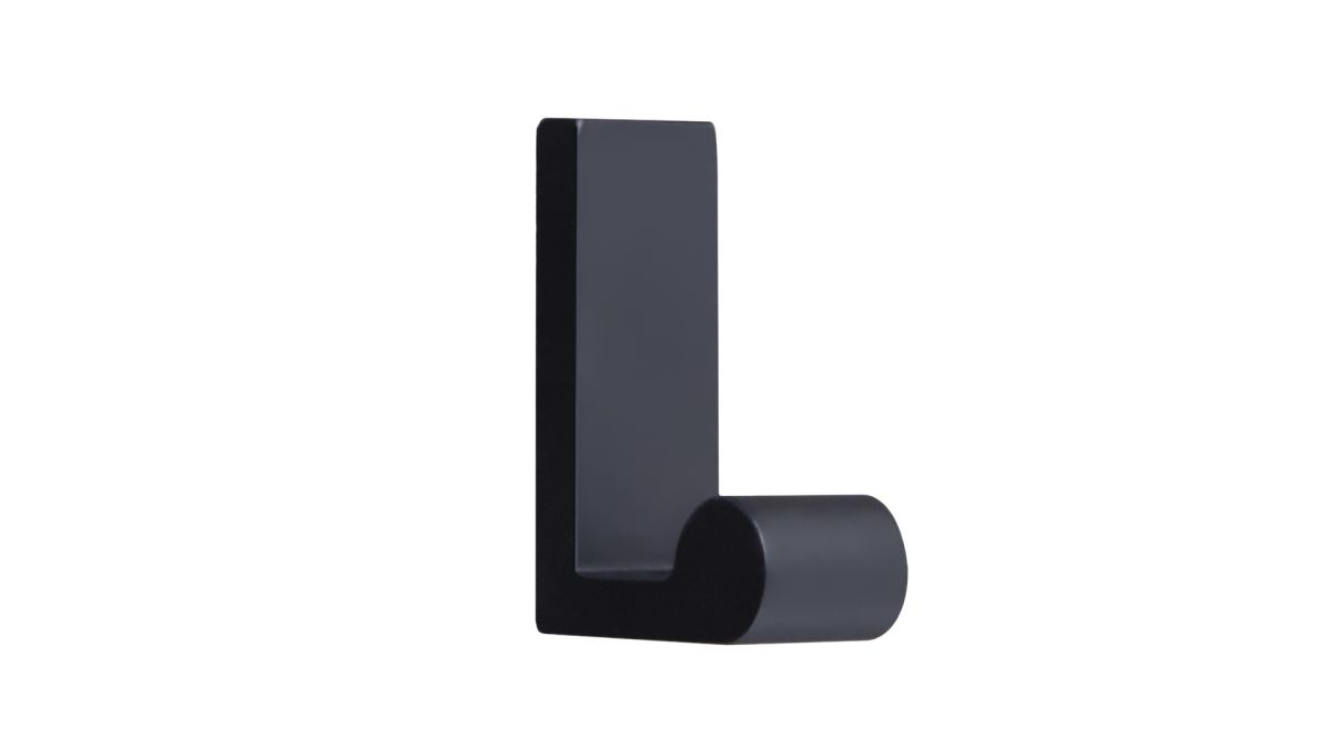 LUNO K109 — L-образный однорожковый крючок скрытого монтажа из алюминия с оригинальным утолщением в зоне навешивания для надежного размещения вещей.