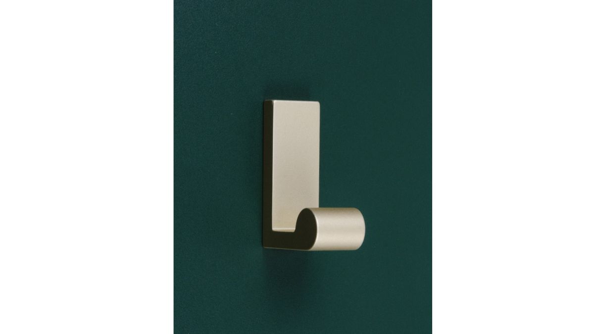 LUNO K109 — L-образный однорожковый крючок скрытого монтажа из алюминия с оригинальным утолщением в зоне навешивания для надежного размещения вещей.