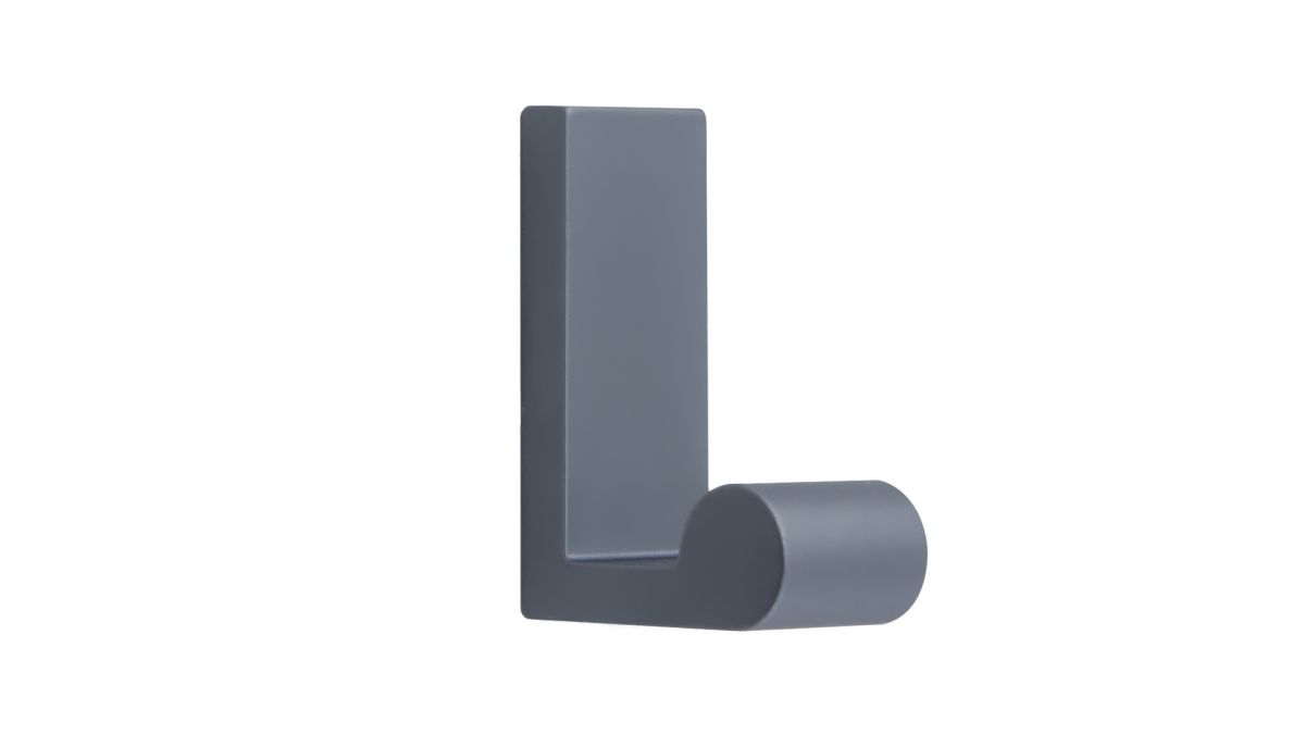 LUNO K109 — L-образный однорожковый крючок скрытого монтажа из алюминия с оригинальным утолщением в зоне навешивания для надежного размещения вещей.