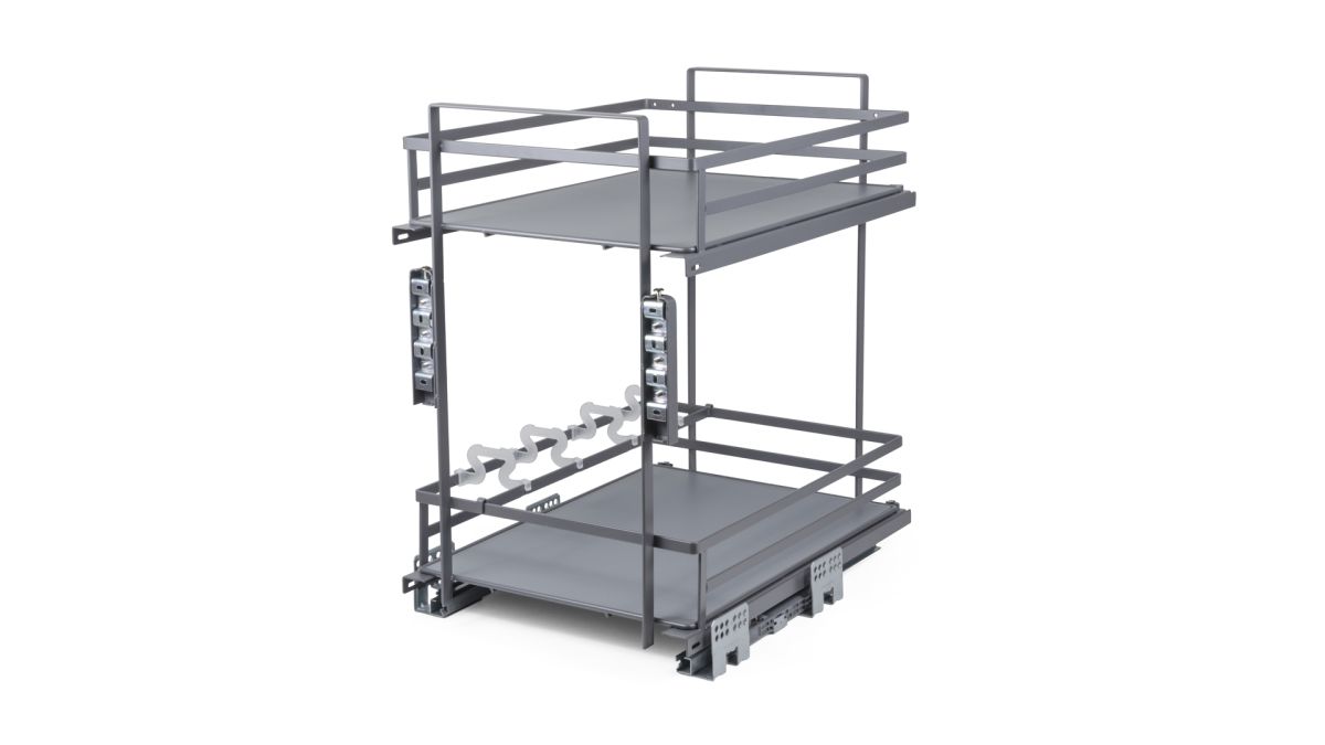 Корзина предназначена для организации и удобного хранения в модулях шириной 300 и 400 мм имеет 2 уровня хранения со сплошным антискользящим дном. На нижнем уровне имеются дополнительные делители для устойчивого размещения предметов и продуктов. Рекомендуемая нагрузка на систему — до 30 кг. Направляющие SOFT обеспечивают 50 000 циклов открывания/закрывания.