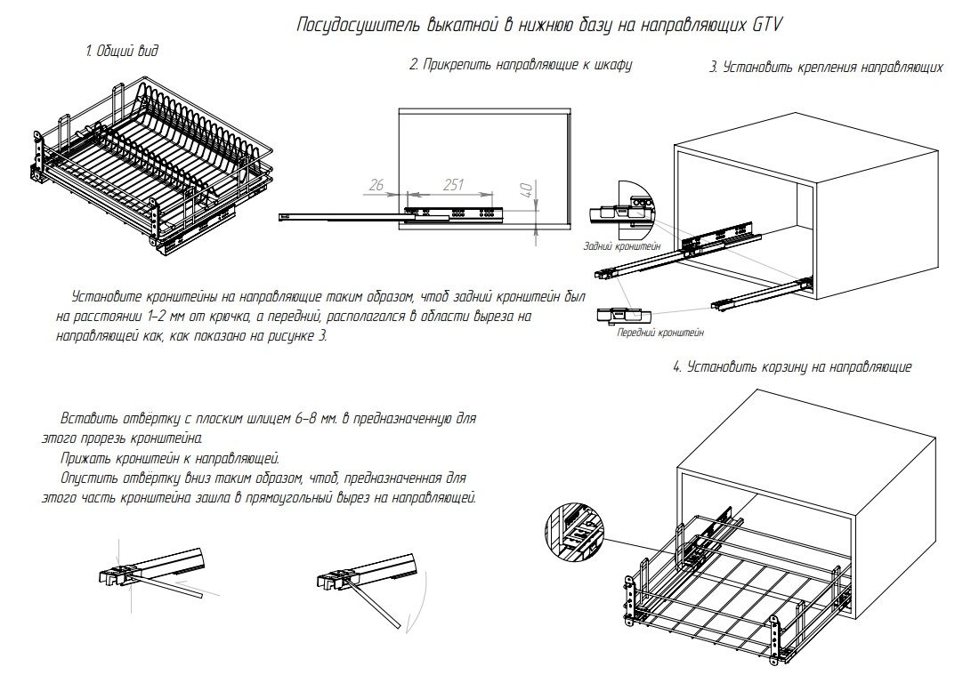 Корзина 150/2 полки ЧЕРНАЯ (Левая) + направл Квадро GTV c дов. 110х454х560