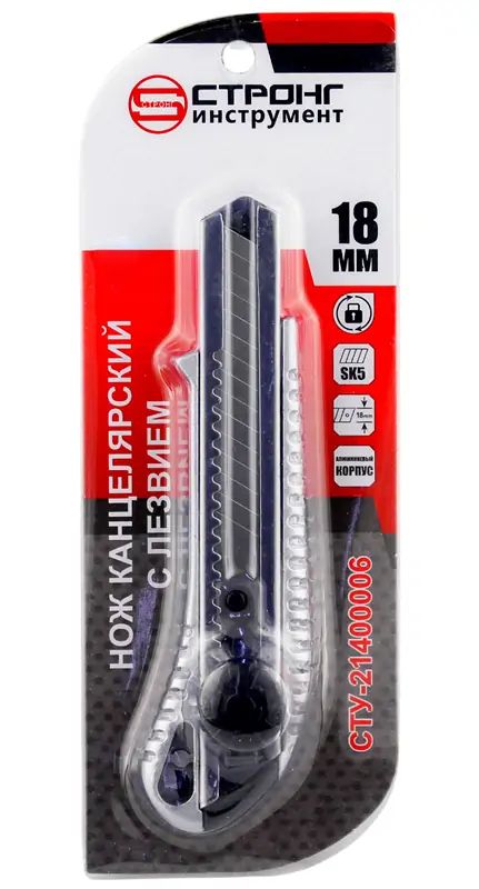 Нож малярный 18мм О6 корпус -алюминий Strong