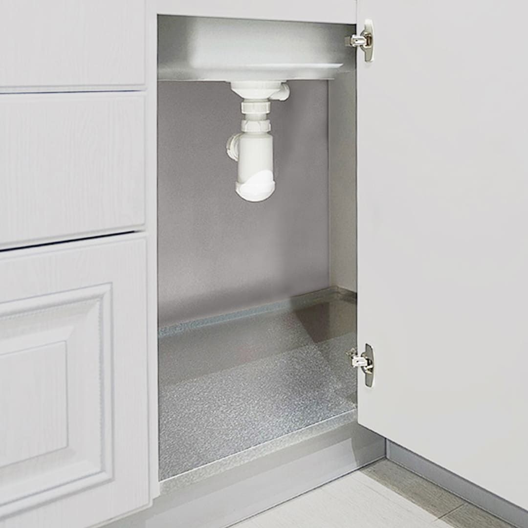Гигиенический поддон в шкаф под мойку предназначен для защиты дна шкафчика от попадания на него влаги и разбухания. Изготовлен из прочного тисненого алюминия. Преимущества: