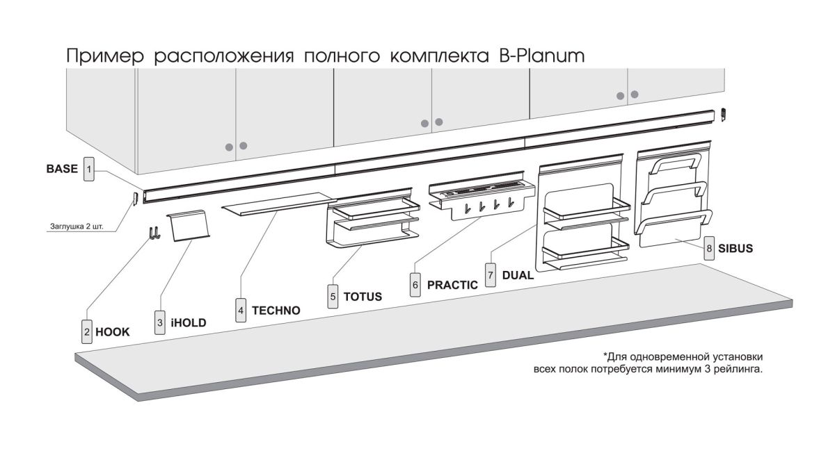 Серия современных навесных кухонных аксессуаров B-Planum выполнена из алюминия в наиболее надёжном покрытии методом анодирования. Технологией покрытия и разные способы производства полок и базы рейлинга, обусловлен возможный малозаметный разнотон в оттенке покрытия полок и базы рейлинга, не влияющий на внешний вид изделий и дизайн мебели в целом.