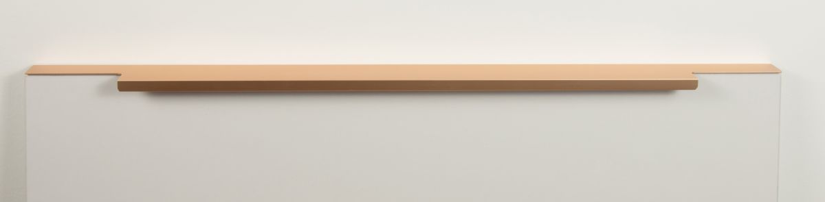 Ручка имеет богатую палитру цветовых решений и разнообразие длин. В зависимости от длины, модель допускает размещение двумя способами — «в размер» фасада и по центру широких фасадов (как большой «язычок»).