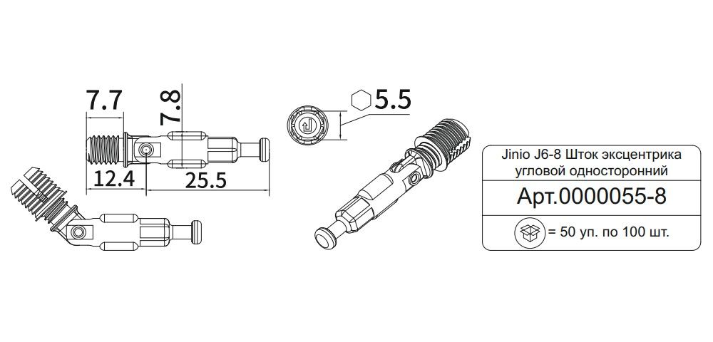 Шток эксцентрика угловой односторонний Jinio J6-8