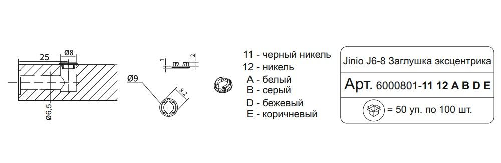 Заглушка эксцентрика бежевый D=9мм Jinio J6-8
