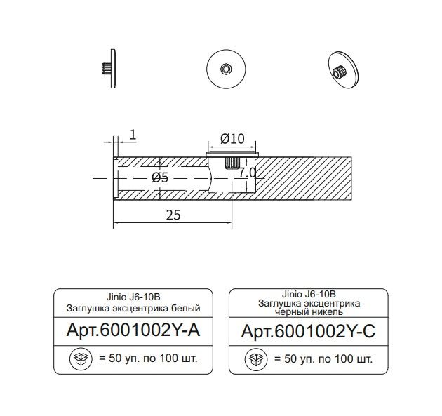 Заглушка эксцентрика черный никель D=10мм Jinio J6-10B