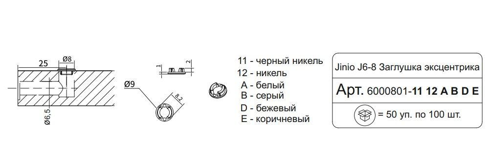 Заглушка эксцентрика черный никель D=9мм Jinio J6-8